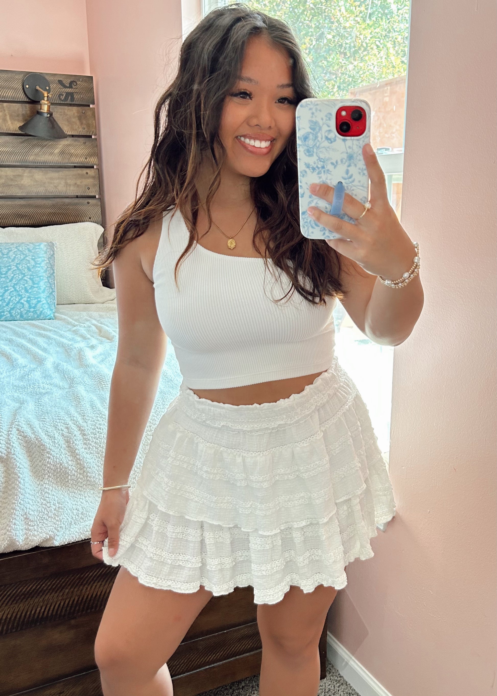 Ruffle layer Mini Skort - white